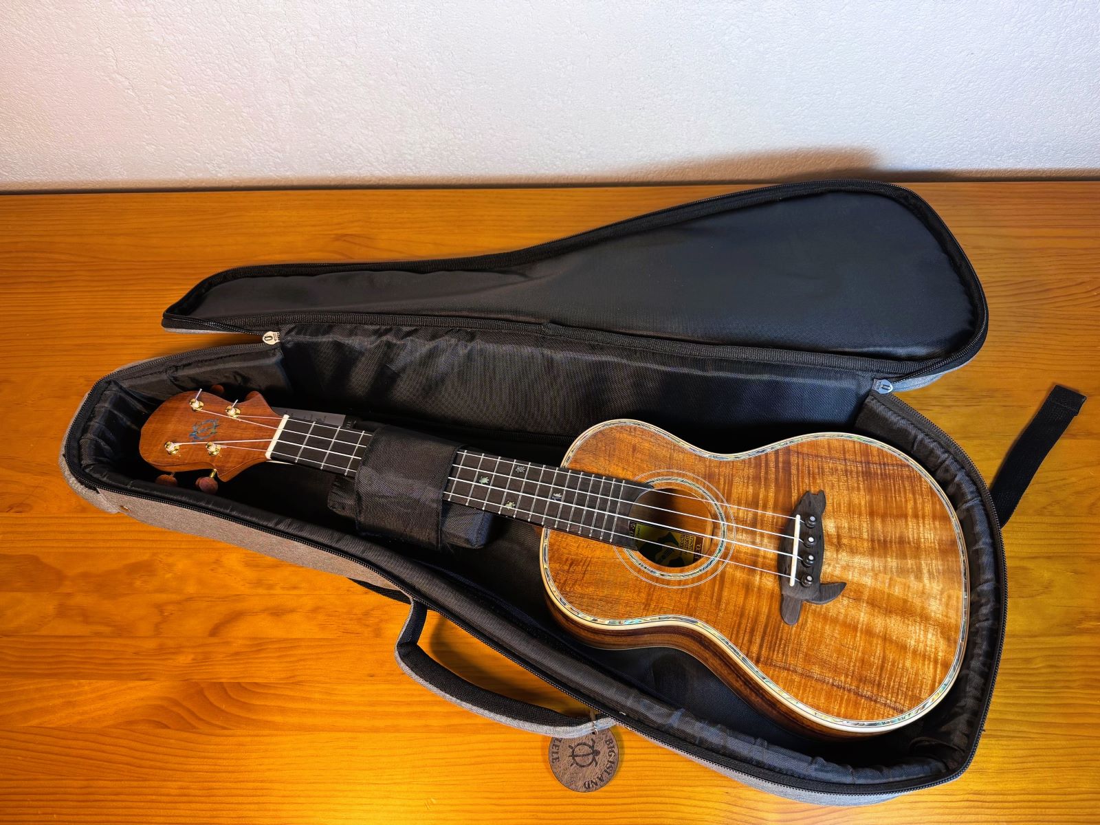 Lieferung inkl. Gigbag. Die Bilder zeigen die aktuell lagernde Ukulele mit der Seriennummer 230403