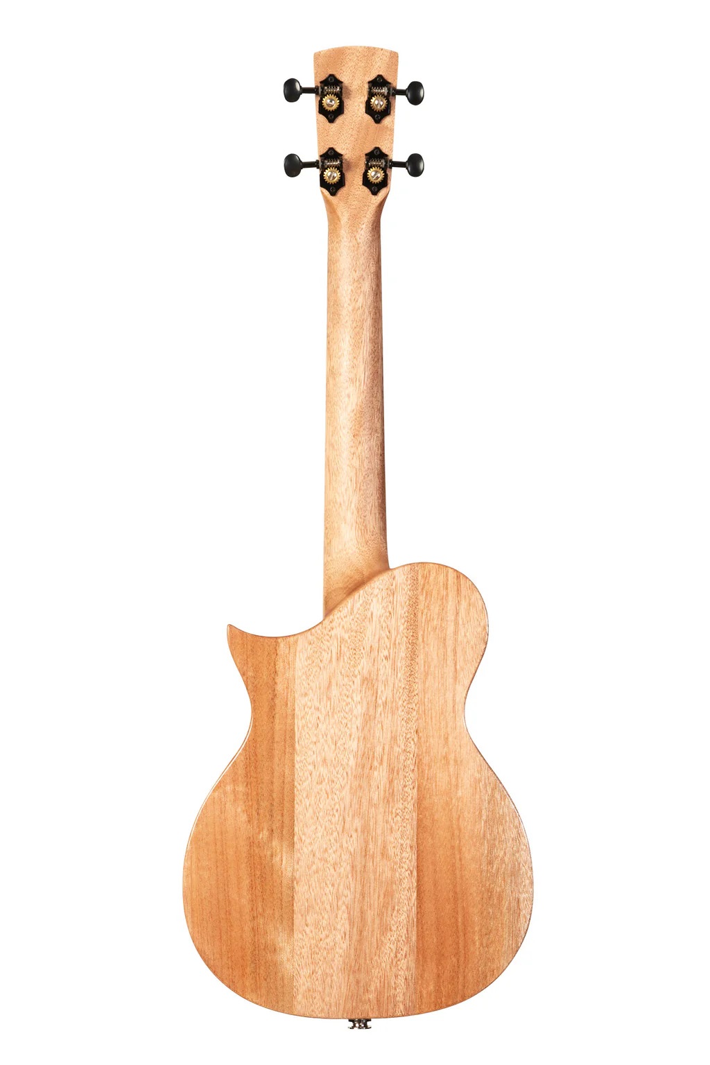Die Revelator Night Owl Tenor-Ukulele von Kala ist eine Hommage an den britischen Gitarrenbauer Pete Howlett und interpretiert dessen Originaldesign neu. Diese schlanke elektroakustische Ukulele ist eine wahre „akustische Anomalie“ und vereint den vollen Klang und die Lautstärke einer herkömmlichen Ukulele. Das Instrument ist ebenso inspirierend anzusehen wie zu spielen.
